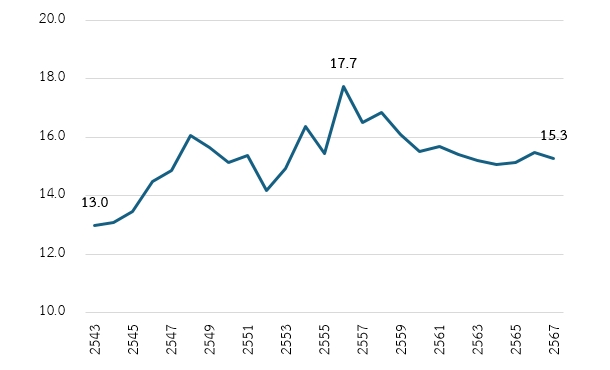 รายรับภาษีต่อ GDP ของประเทศไทย (ร้อยละ)